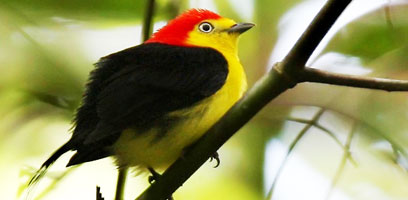 Early in the morning, we'll set off on a hike in search of manakins, trogons, barbets etc. We can also find poison dart frogs (Dendrobates). We'll return for Déjeuner at the research center then hike along the road towards Nauta where we can find several species of parrots congregating at the fruit trees along the road. We can also find caciques, oropendolas, tanagers and cotingas. We'll return à the research center for lunch. Later In the afternoon we'll explore other trails looking for more birds as well as primates such as "Pichicos" or "Saddleback Tamarin" (Saguinus fuscicollis) , "Guapo Negro" or "Monk Saki" (Pithecia monachus) and the "Tocon" or "Andean Titi" (Callicebus oenanthe). We'll return for dinner. Nuit at the Research Center.